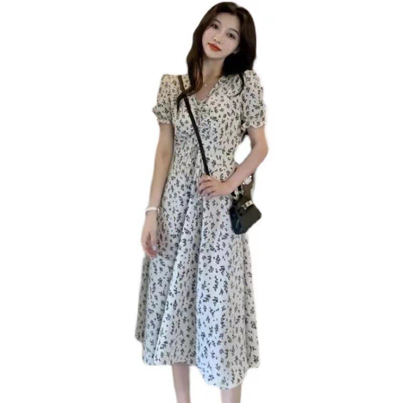 Product information: Pattern: Plants and flowers Color: White, black Sizes: S, M, L, XL, 2XL, 3XL Fabric name: Polyester Sleeve length: Short sleeve Dress category: Dress Note: Packing list: Dress*1 Product Image: