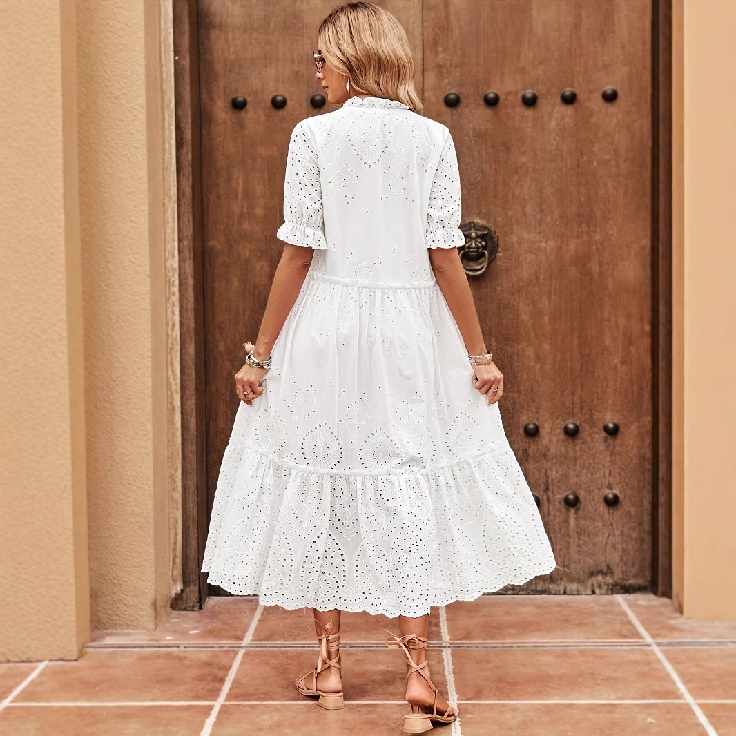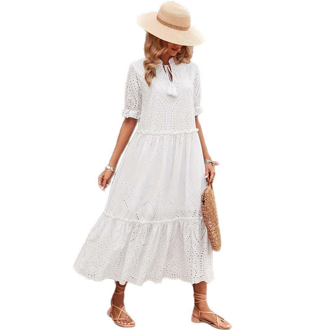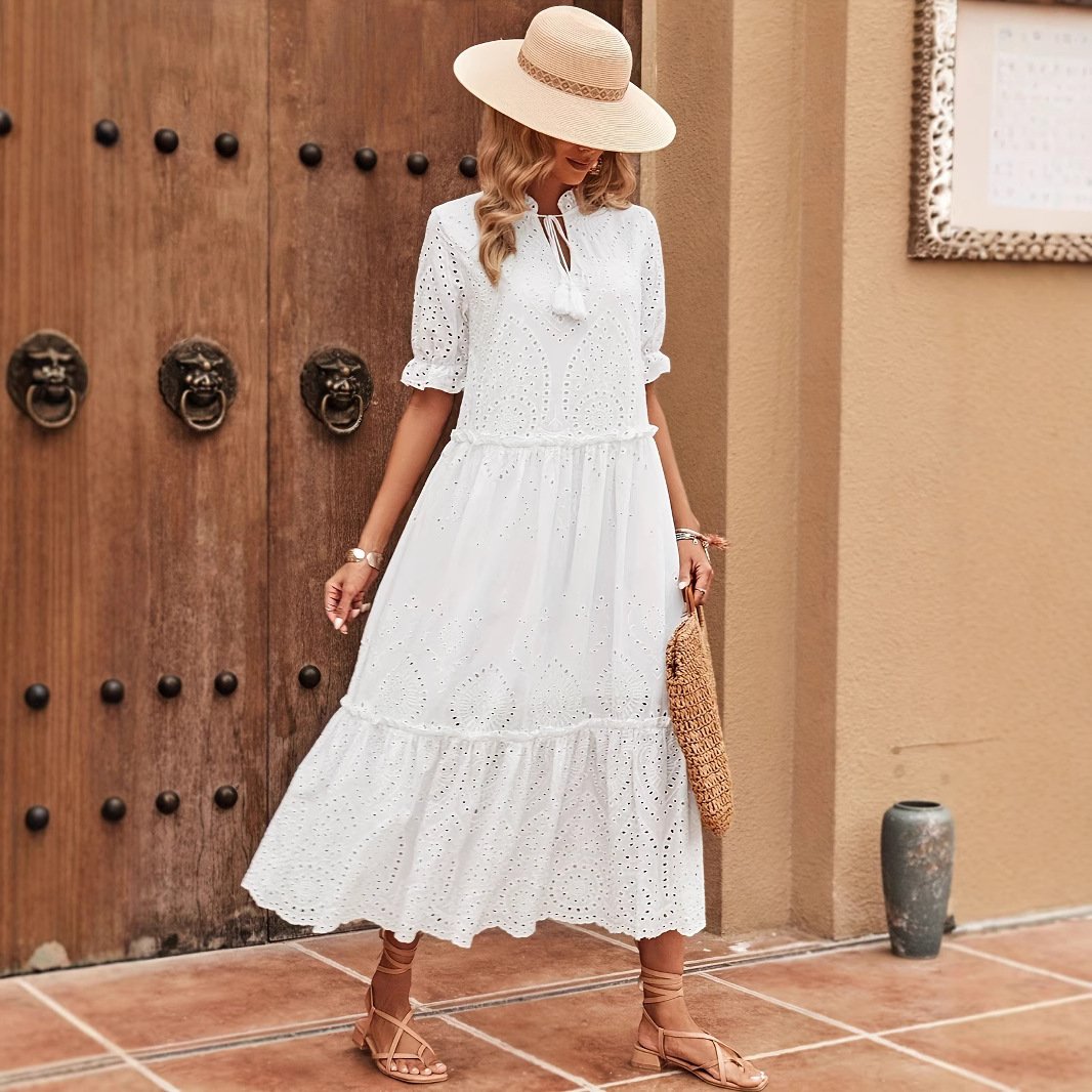 Cross-tie Spliced Long A-line Dress Elegant And Office-appropriate