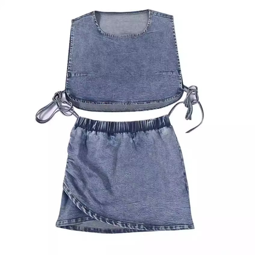 Denim Style Vest Short Skirt Stretch Two-piece Suit Sexy Denim Women’s Wear