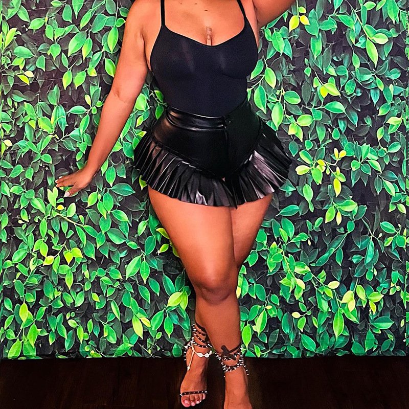 Be the first to review “Elegant Dark Leather Frill Super Short Shorts”