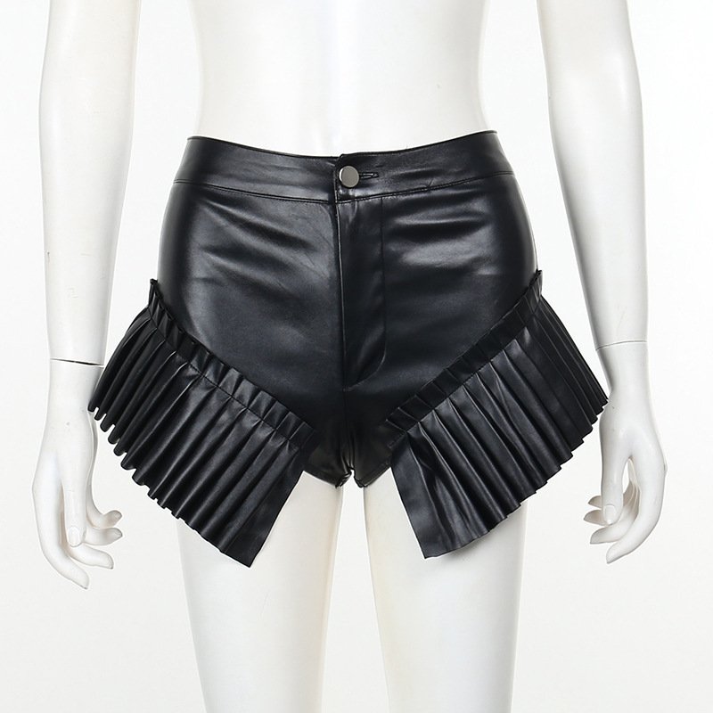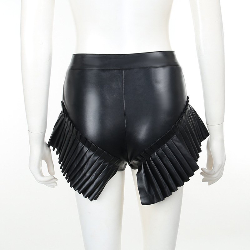 Elegant Dark Leather Frill Super Short Shorts