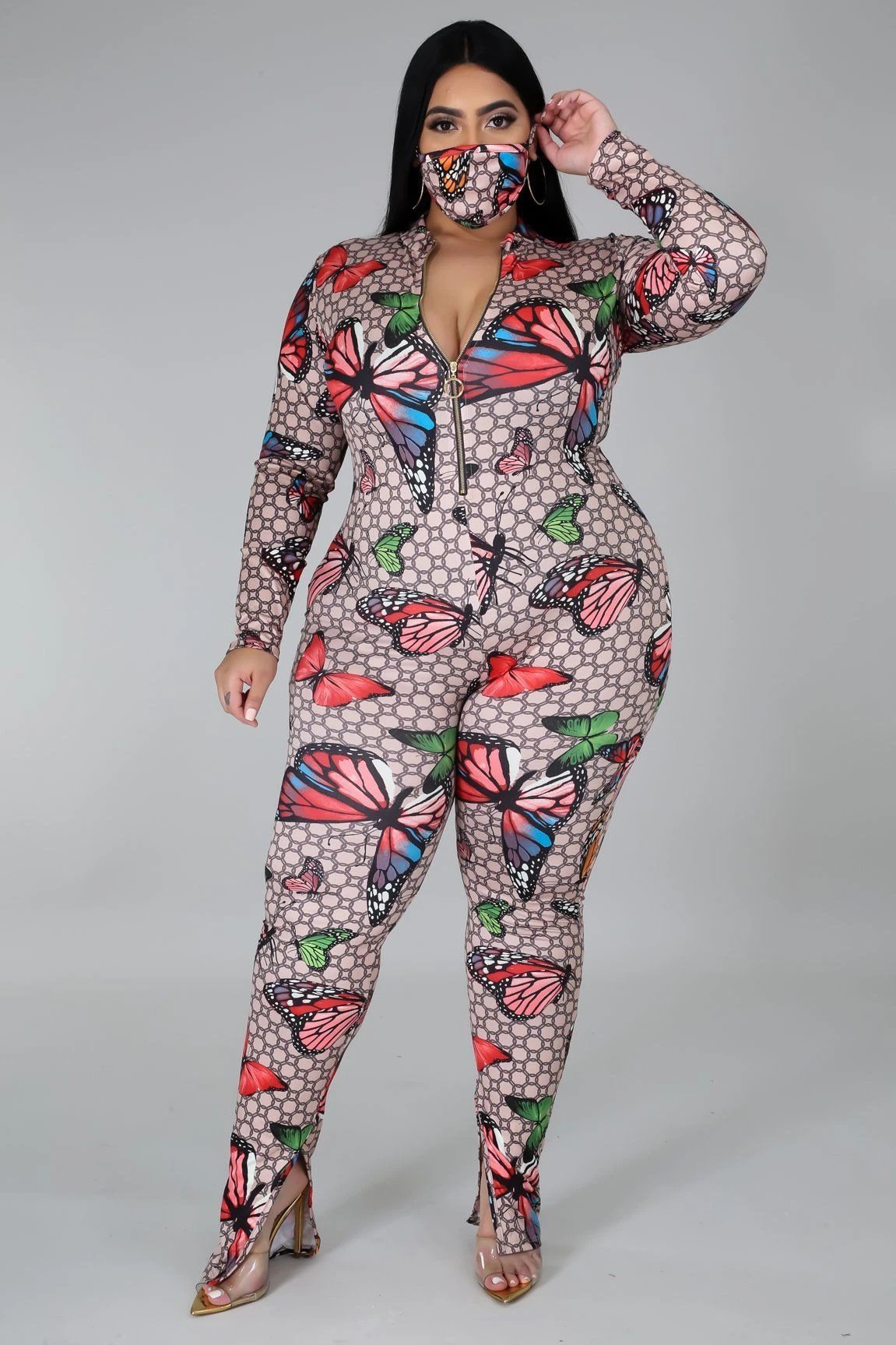 European and American Plus Size Fat Woman Stretch Digital Print Jumpsuit