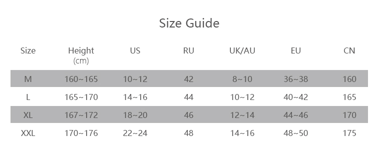 1. Asian sizes are 1 to 2 sizes smaller than European and American people. Choose the larger size if your size between two sizes. Please allow 2-3cm differences due to manual measurement.