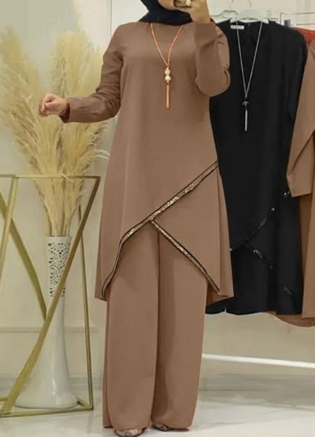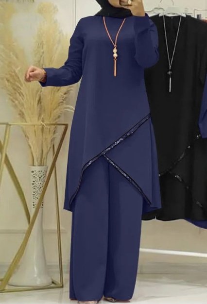 Be the first to review “O-collar Long Sleeve Shirt Wide Leg Pants Suit Casual Women’s Suit”