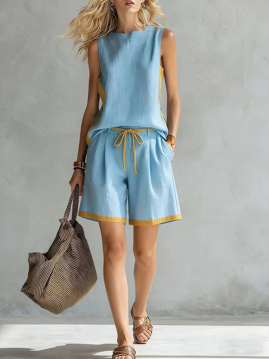 Solid-color Loose Casual Vest And Shorts Set
