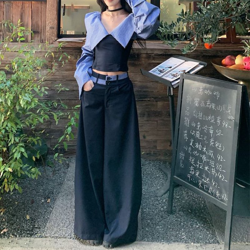Color: Blue top, navy blue pants, blue top + navy blue pants