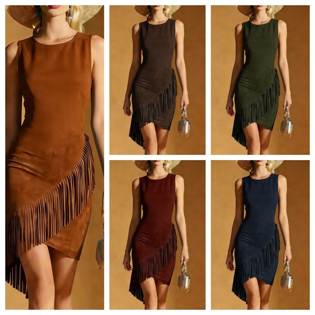 Be the first to review “Western Wind Womens Summer Elegant Silk-Satin Texture Tasseled Hem Sleeveless Tank Dress”