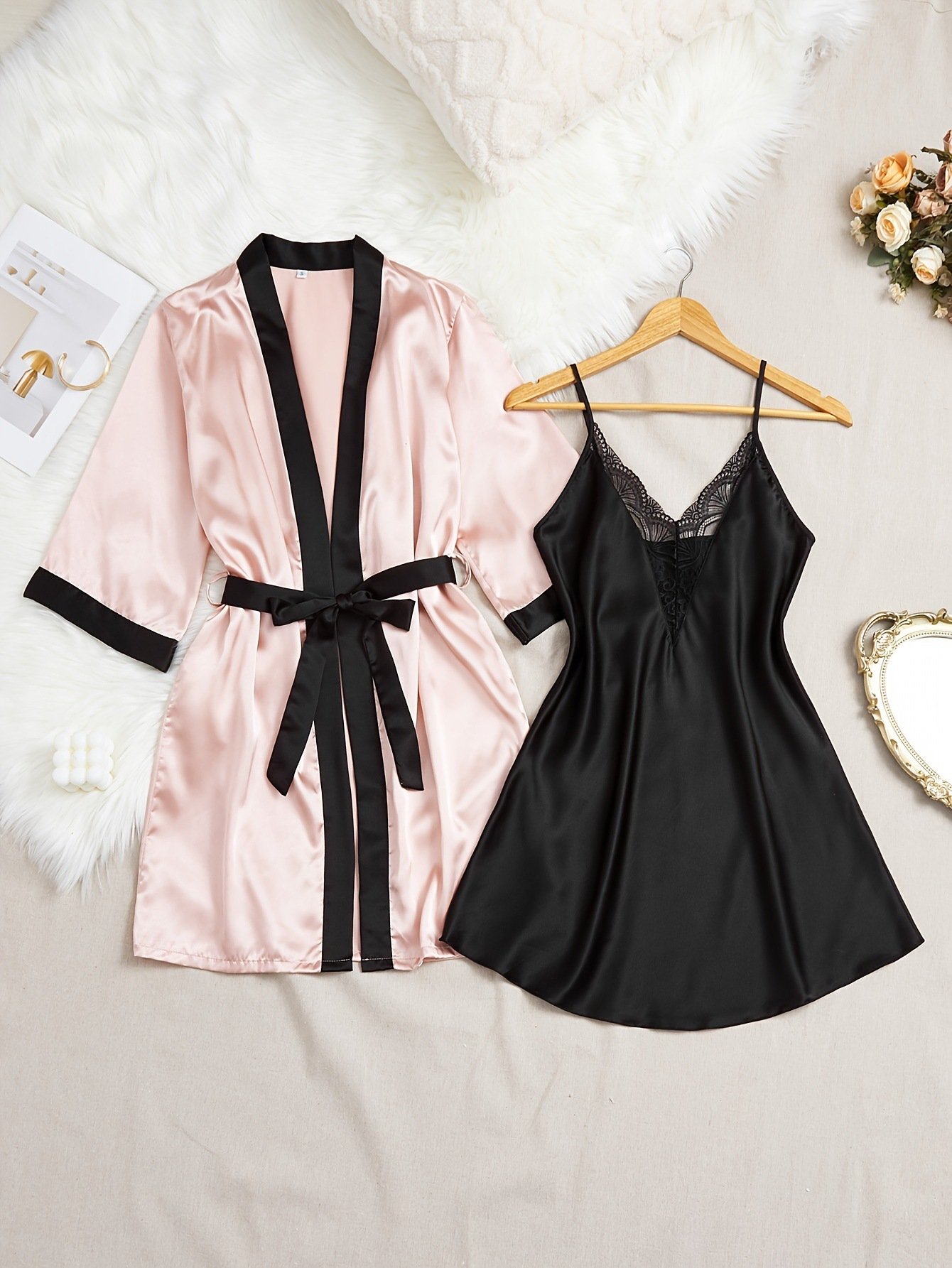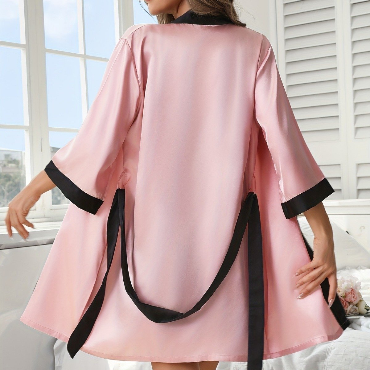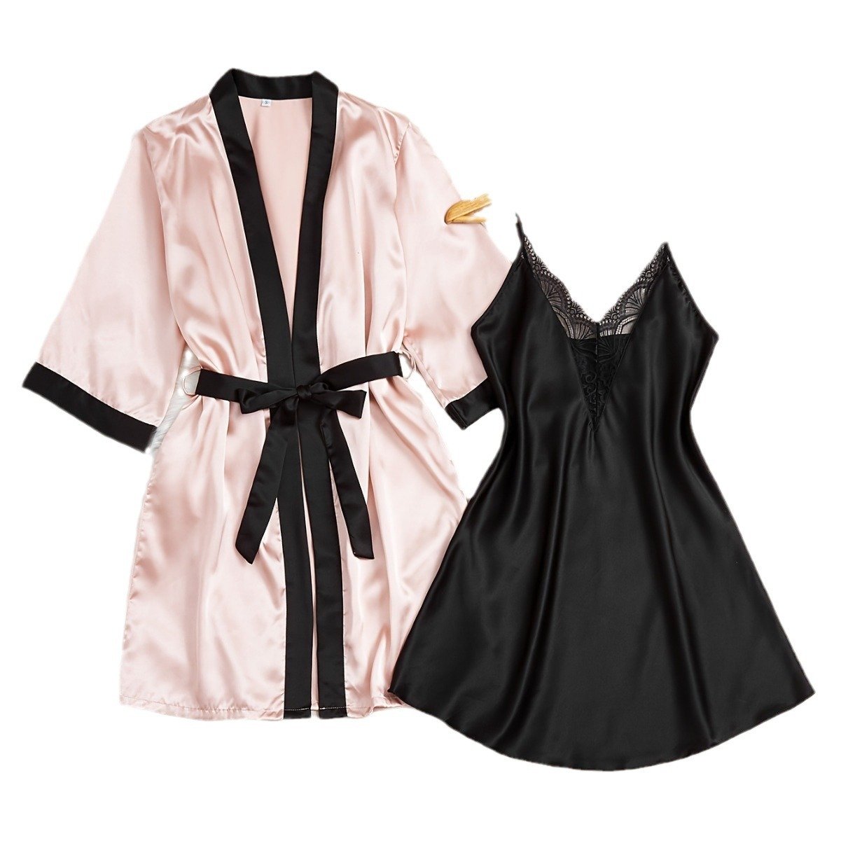 Womens Faux Silk Bathrobe And Pajama Two-Piece Set